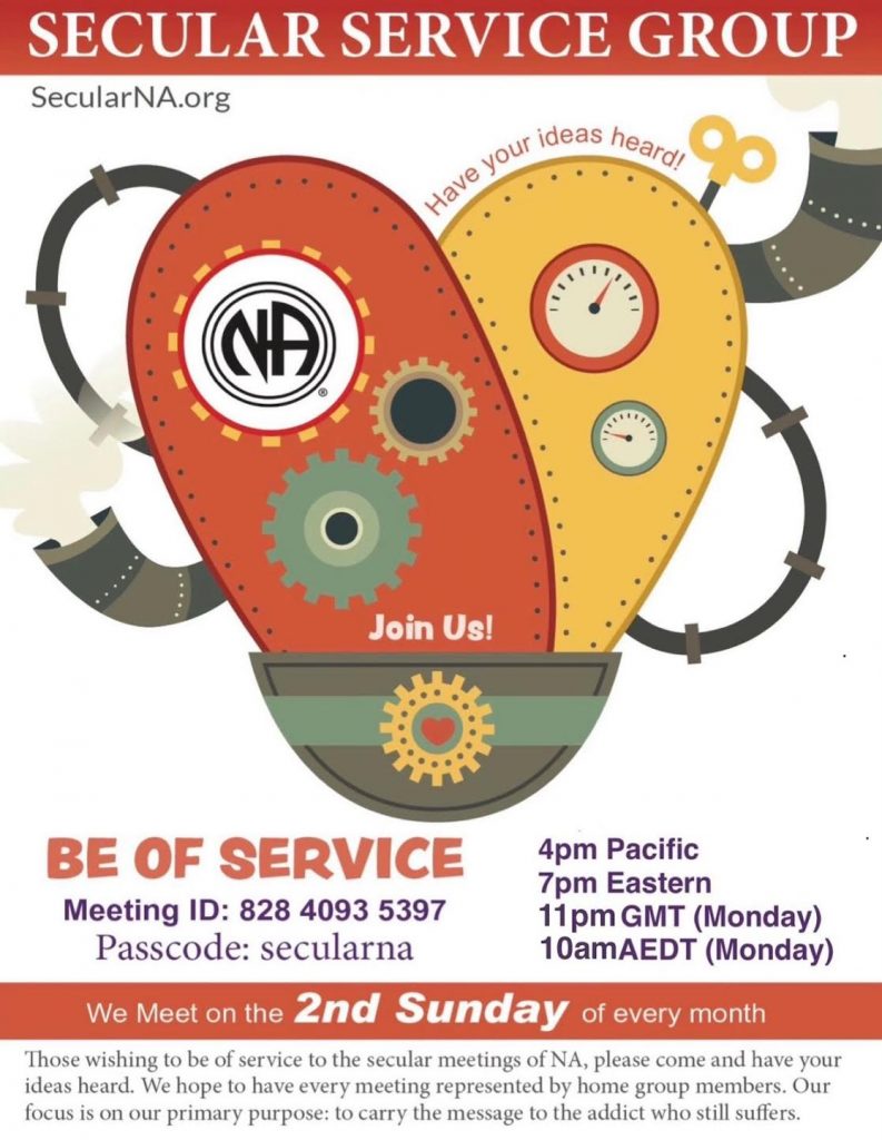 The Secular NA.org website started in 2021 as a collaborative effort among like-minded NA members primarily from the Seattle and Melbourne groups. Face-to-face meetings had opened in Melbourne Australia, Seattle Washington State and London in the UK in or around 2015 and had been running continuously up until the Covid 19 pandemic in 2019. The pandemic resulted in zoom online meetings becoming the main platform where NA meetings took place worldwide. This sudden ease of accessibility allowed secular NA to grow rapidly.